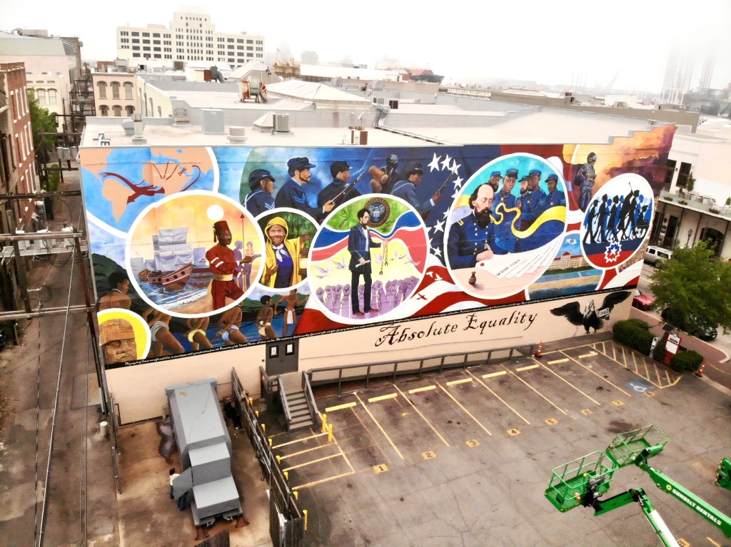 The newest destination on the Strand, a 5,000 square foot mural by Houston-based artist Reginald Adams, finally provides a physical destination where tourists can reflect upon a decisive moment in Galveston’s and the nation’s history. The mural is the centerpiece of the Juneteenth Legacy Project, a platform for telling the Juneteenth story and promoting its celebration of freedom and opportunity. It depicts a pivotal chapter in the American narrative, through several graphic “portals.” The story, which begins with the African slave trade, moves on to the Underground Railroad and Lincoln’s Emancipation Proclamation. It culminates with the eventual announcement of “Absolute Equality” by Union Army General Gordon Granger, in the presence of several Union regiments of the U.S. Colored Troops. The June 19, 1865 announcement of the Emancipation Proclamation in Galveston, two and a half years after it was first issued, freed some 250,000 Texas slaves and inspired the Juneteenth holiday. The mural is located at 22nd Street and the Strand, across the street from the former slave market and overlooking the location at which Granger is said to have made the announcement.